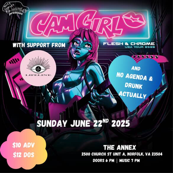 On Sunday, June 22nd, we’re playing our first show at Norfolk’s newest venue, The Annex. We’ll be supporting Cam Girl (North Carolina) along with our friends in Lifeline and No Agenda.